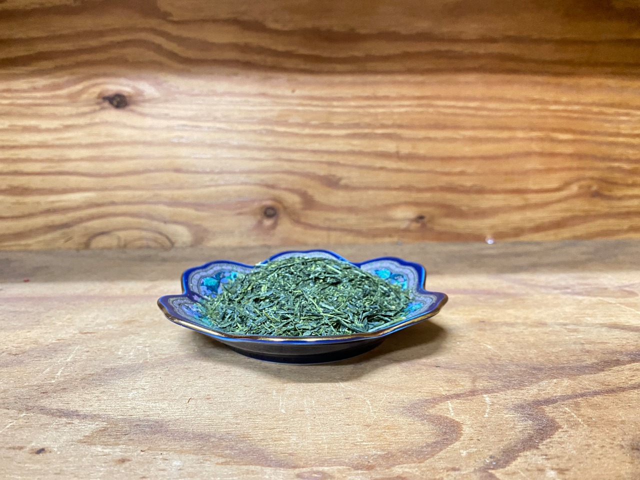 普通煎茶に比べて、生葉の蒸し時間を2~3倍長くして作っているので渋味・苦味が抑えられ、まろやかな味わいになっております。